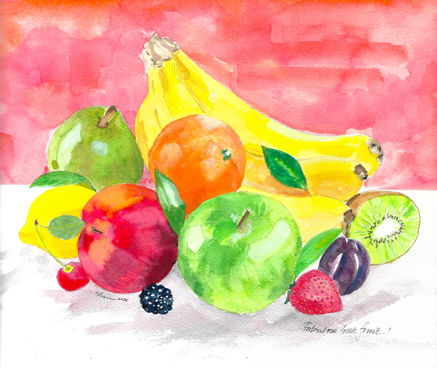 Fabulous fresh Fruit!Illustrated by Tim in gouache, wash and ink. £4 each or 3 for £10 This card like all the others is printed on premium FSC®-certified paper. Each card is A6 size 105 x 148 mm 4.13 x 5.83 inches and comes in a cello bag with an envelope,