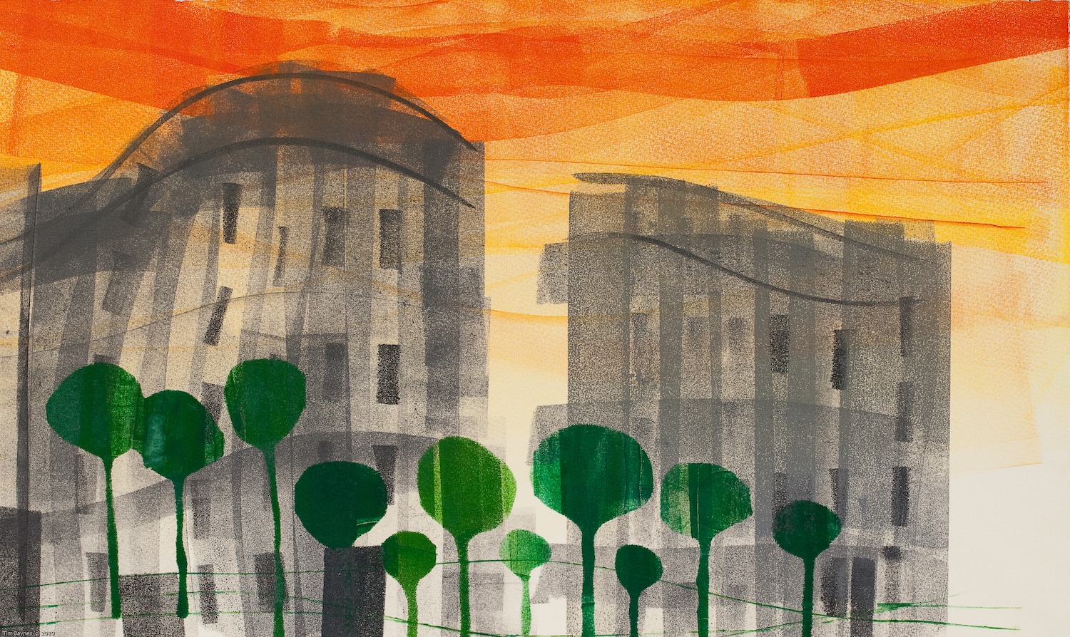This is part of Tim’s Cities series are cards taken from a successful series of monoprints first shown in the Circus Gallery in Marylebone London. Each card is A6 size 105 x 148 mm 4.13 x 5.83 inches and comes in a cello bag with an envelope. Cards £4 each or 3 for £10